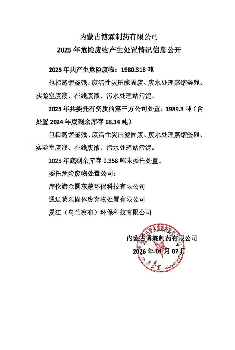 2025年內(nèi)蒙古博霖危險廢物產(chǎn)生處理情況信息公開